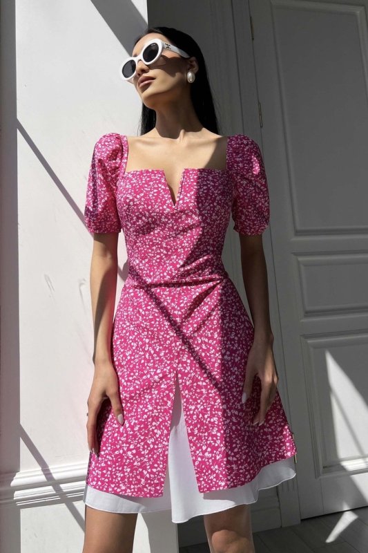 Смілива та вишукана сукня-двійка стала справжнім втіленням грайливості та кокетства. Сукня прилеглого силуету з фігурним V-подібним вирізом дозволить продемонструвати красиву лінію декольте. Довжина міні. До сукні передбачено окрема нижня спідниця. Модель представлена у широкій кольоровій гамі на будь який смак.