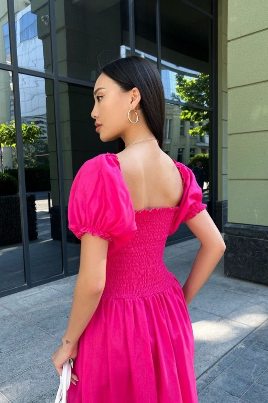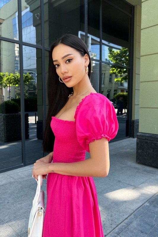 Настало літо, а значить настав час розбавити сірі та монотонні образи яскравими відтінками, і додати в цей світ соковитих фарб! Знайомся, тепер це найголовніший "козир" у твоєму гардеробі, - новенька сукня із льону. При створенні моделі, ми подумали що немає нічого приємнішого і комфортнішого ніж легкий і ніжний льон у поєднанні з класичним силуетом. Ліф на резинці, відмінно підійде для струнких дівчат так і власниць пишних форм. По переду передбачено високий розріз. Рукав – пришивний, на резинці. Пишна спідниця з двома розрізами додасть Вашому образу романтичності.