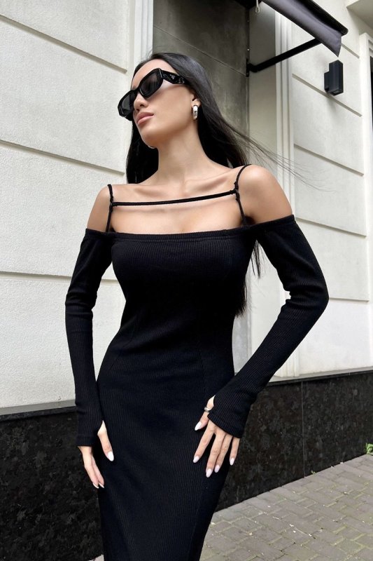 Лаконічна сукня-міді на тонких бретельках. Гарно підкреслить вашу фігуру і буде чудовим вибором як для повсякденного образу, так і для вечірнього виходу. Виконали із трикотажу у дрібний рубчик. Надзвичайно витончена та ніжна модель.