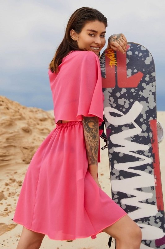 Пляжна туніка вже давно стала невід'ємною частиною гардеробу кожної дівчини. Адже що може бути прекрасніше ніж коротка туніка з ніжного шифону?. Х-подібний силует додасть образу легкості і сексуальності. V-подібна горловина дозволить візуально подовжити лінію шиї і декольте. Широка колірна гамма дозволить підібрати за смаком вподобаний відтінок. Створюй свій літній образ разом з нами!
