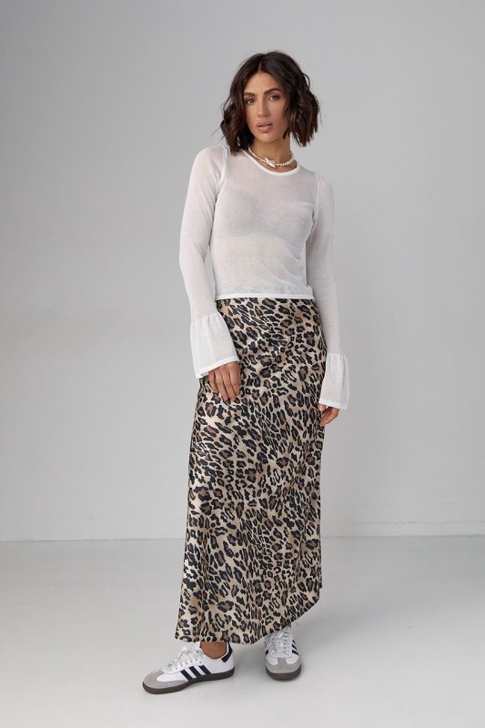 Виготовлений з напівпрозорого матеріалу, цей ніжний джемпер на дотик і м'який до шкіри, дозволить вам почуватися комфортно протягом усього дня. Довгі рукави з воланами надають йому особливого шарму і легкості, створюючи легкий і повітряний образ.