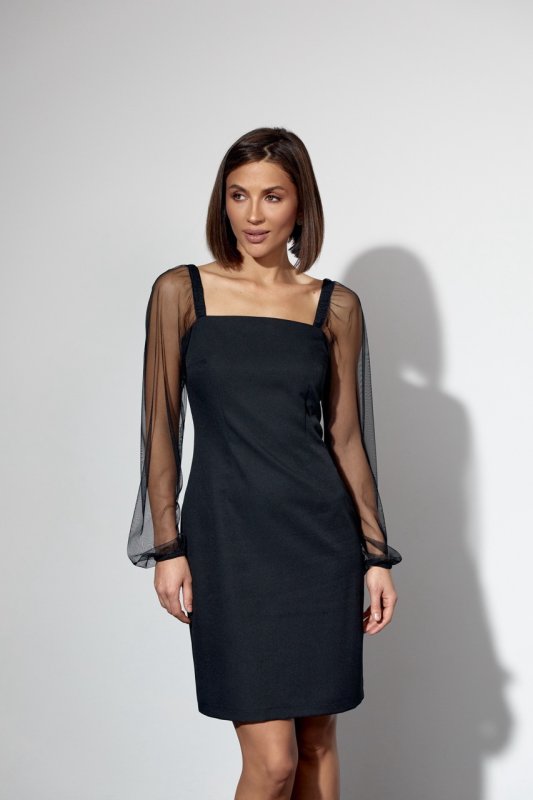Святкова сукня із розрізом сзаді. Виконані виточки талієві і нагрудні. Застібка в середньому шві спинки. Рукава довгі, по низу зібрані на резинку.