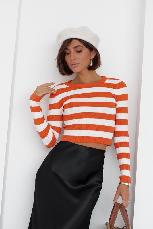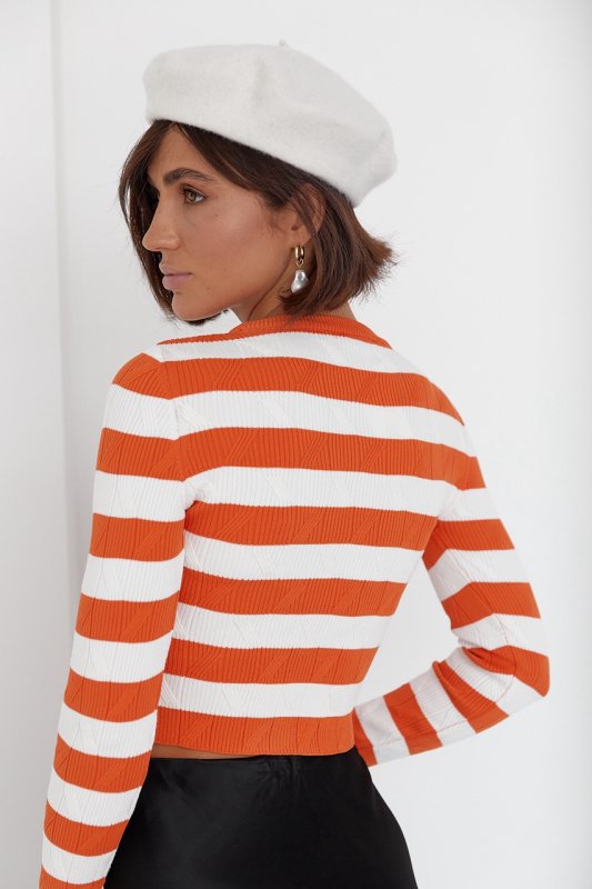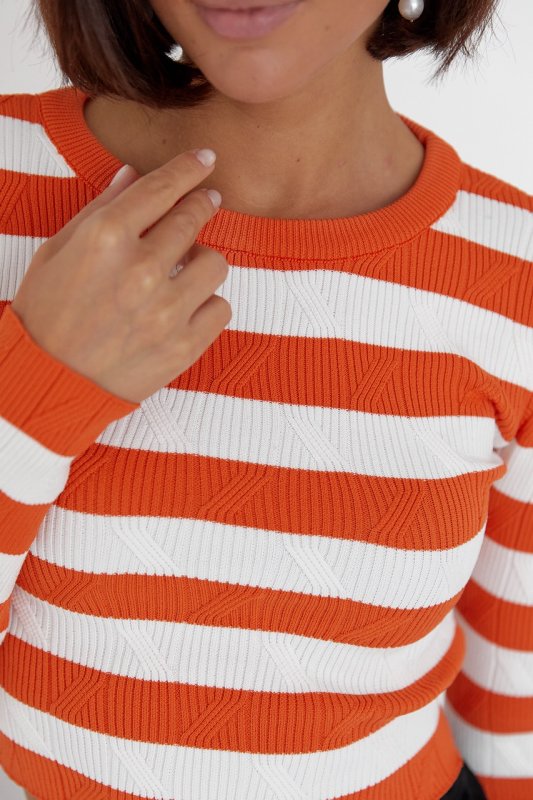 Приталений джемпер у яскраву смужку - 92161 помаранчевий