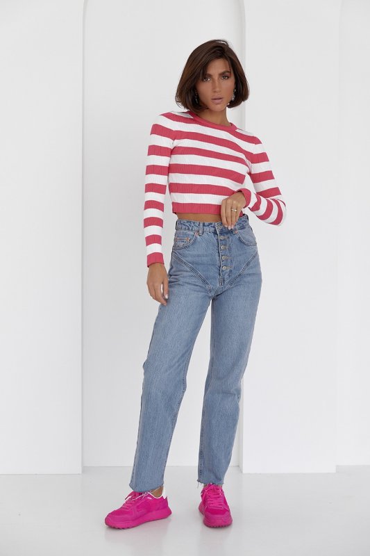 Приталений джемпер у яскраву смужку - 92161 рожевий