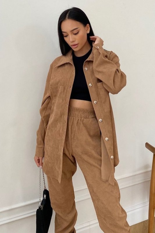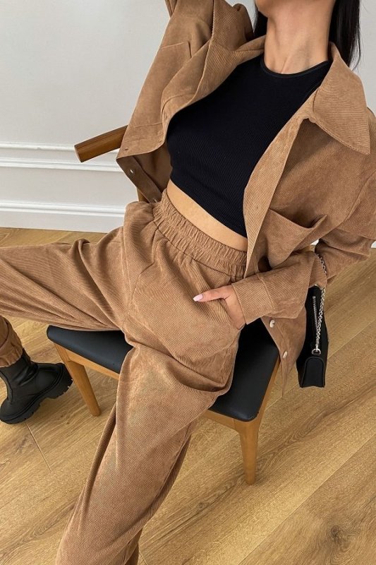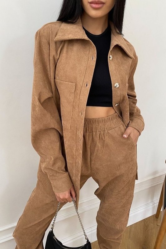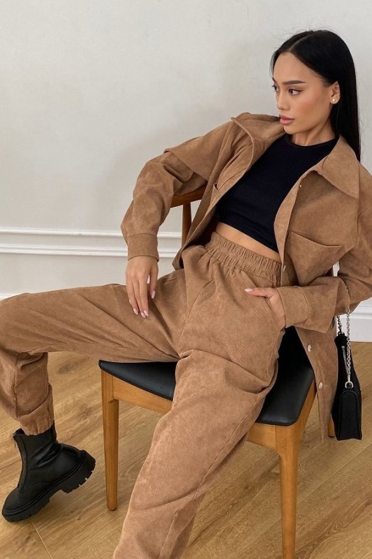 Наш костюм "Інес" це досконалість і лаконічність в одному виробі. Незвичайний силует і дизайн в поєднанні з м'яким вельветом надають цьому костюмчику оригінальності. Костюм вільного крою представлений у вигляді світшота з кнопками по передній планці і брюками, звуженими до низу на манжетах. Ця модель буде гармонійно і виграшно виглядати на будь-якому типі фігури. Представлена в найпопулярніших відтінках.