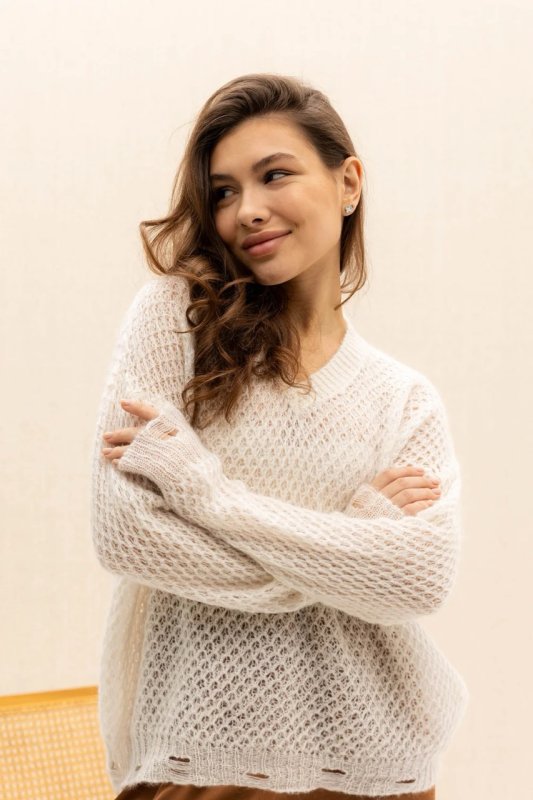 Високоякісна декоративна в'язка, прямий вільний фасон, довгий приспущений рукав – все готове радувати та дарувати відчуття незабутнього комфорту. Жіночий пуловер білого кольору можна носити з різними додатками гардеробу: спідниця, штани, шорти будь-яких фасонів. Будь-яке поєднання буде виглядати стильно, а ви виглядатимете надзвичайно!