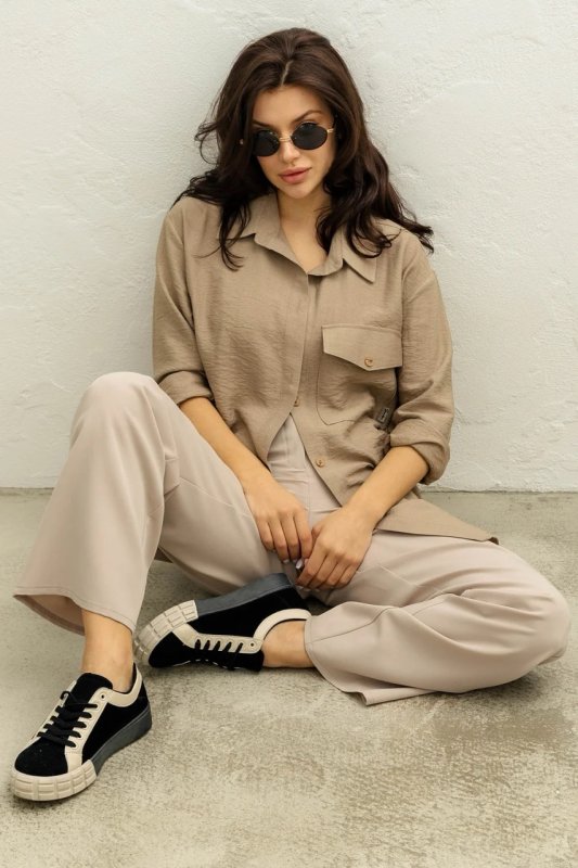 Фасон: вільний, прямий, комір сорочкового типу