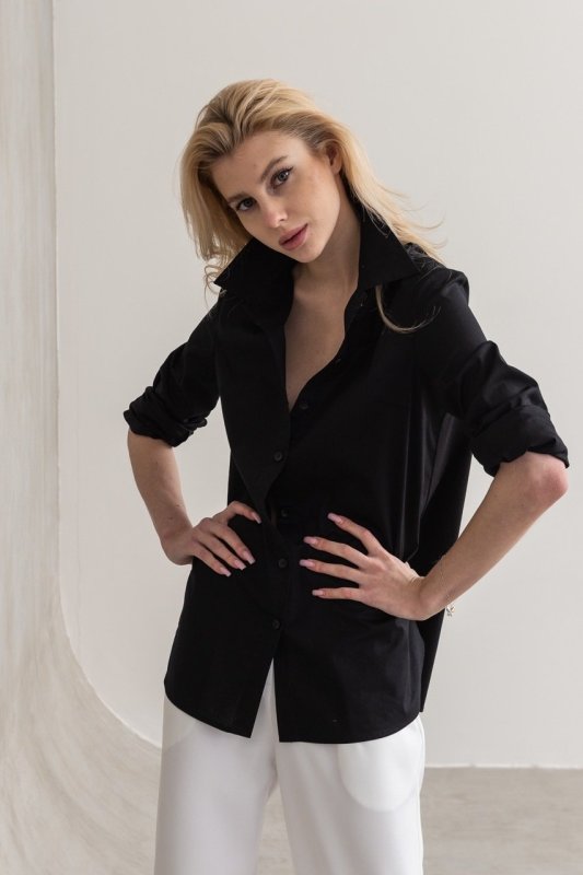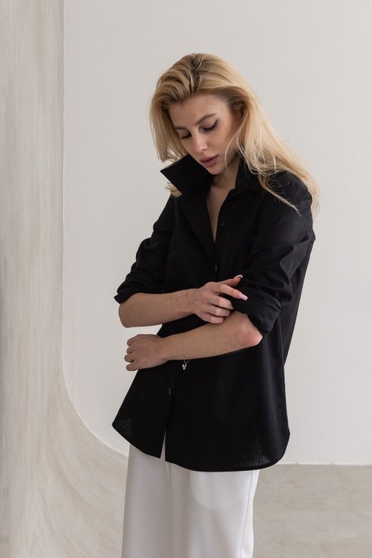 Сорочка з бавовняної тканини чорного кольору Каріма 21291