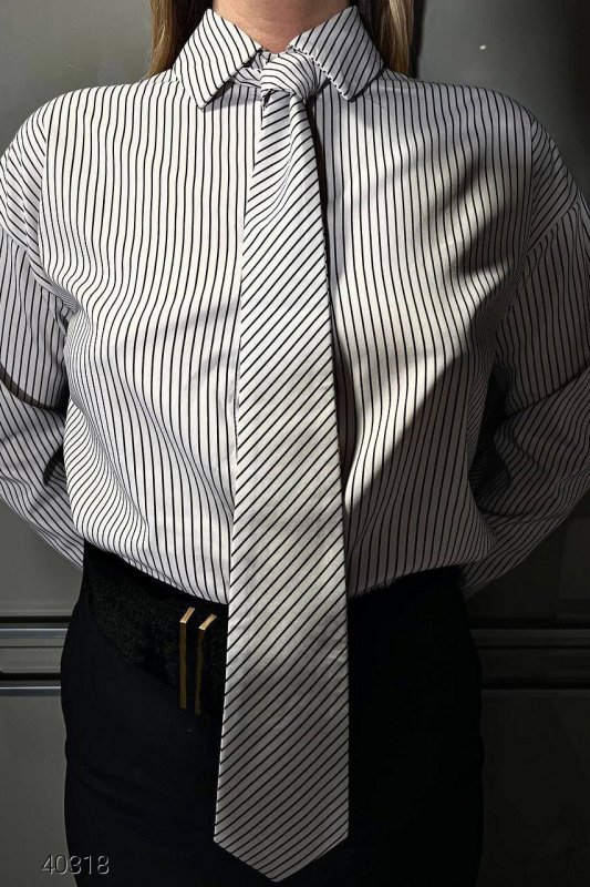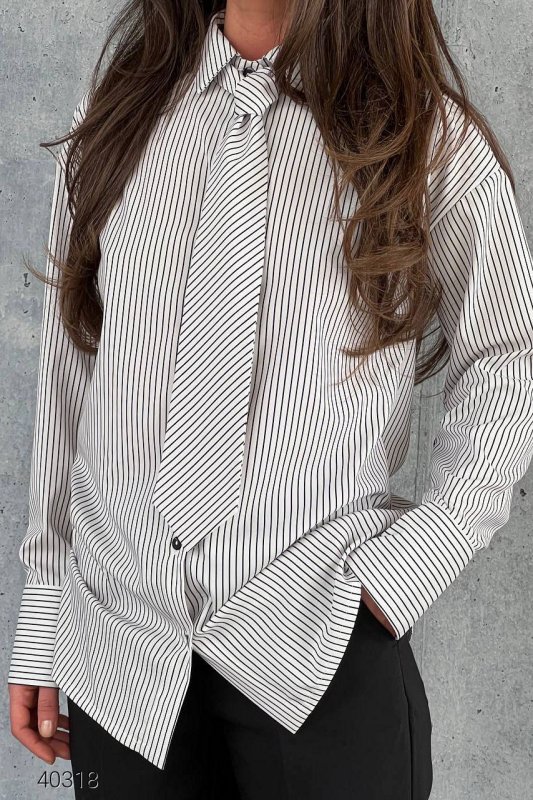 Сорочка жіноча з краваткою. Вільний крій, спущена лінія плеча, вільні рукави з широким манжетом. Краватка у комплекті.