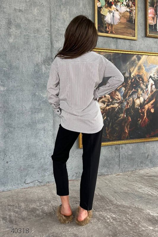 Сорочка жіноча з краваткою 40318 чорна-смужка