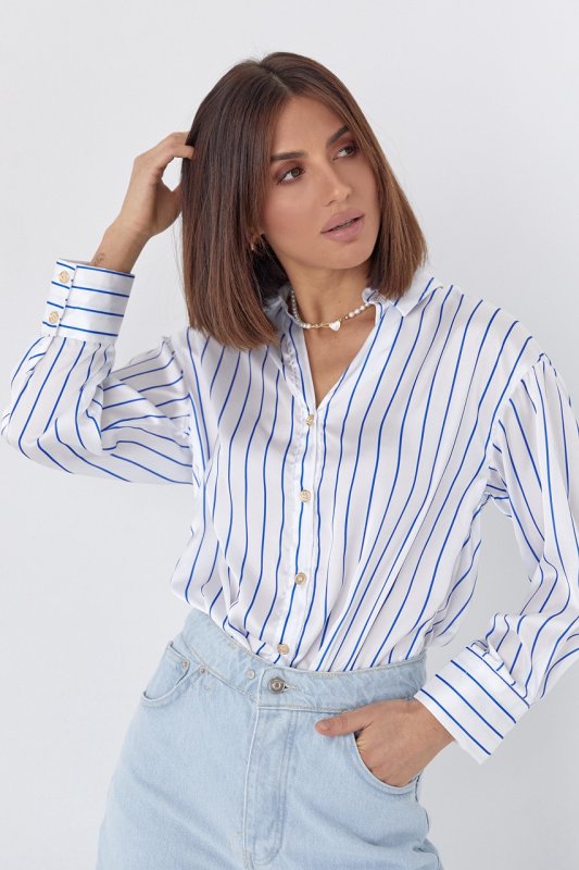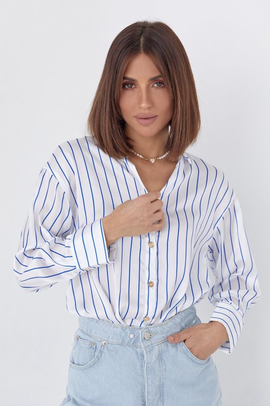 Шовкова блуза на гудзиках у смужку 8774 синя