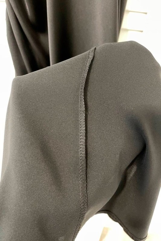 Вечірня шовкова сукня довжини міді в модному білизняному стилі на тонких регульованих бретелях, з глибоким декольте і відкритою спинкою. Родзинкою сукні є регульована затяжка збоку виробу. Без застібок.