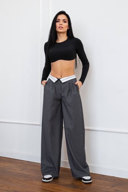 Широкі штани із защипами з поясом на корсажній стрічок 4287