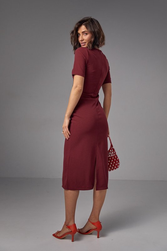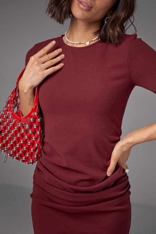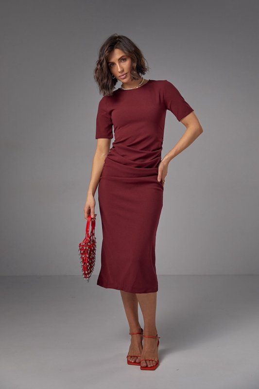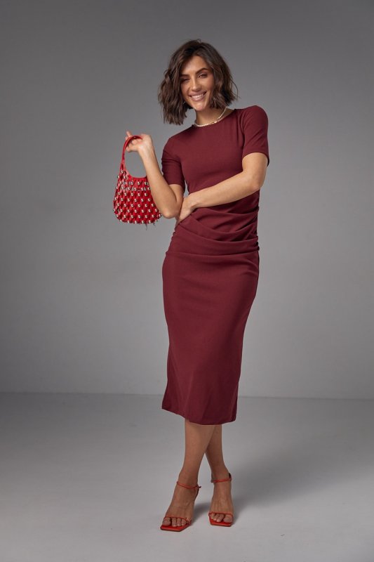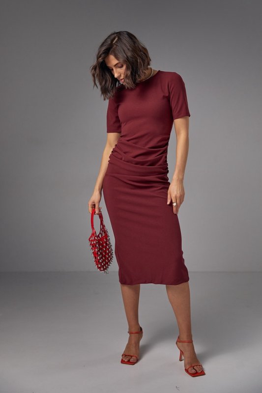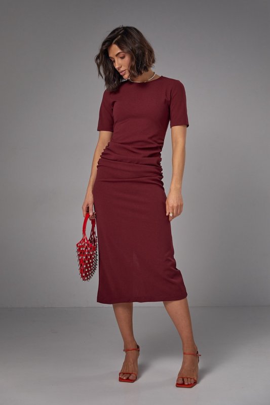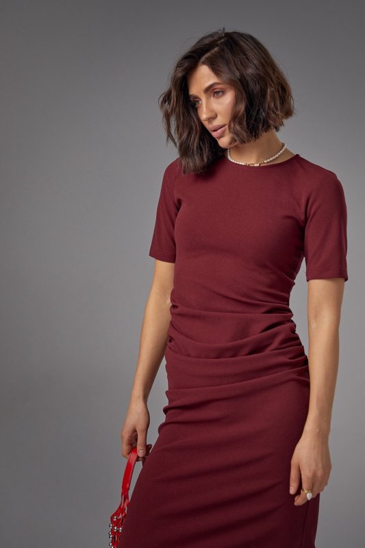 Силуетна сукня міді з драпіруванням - 2695 бордо