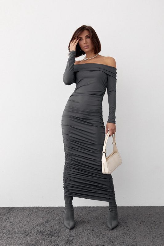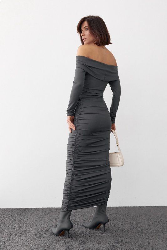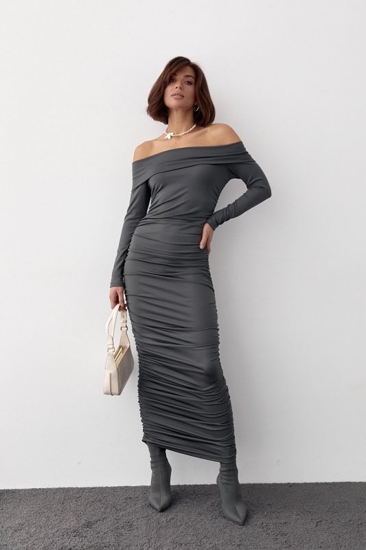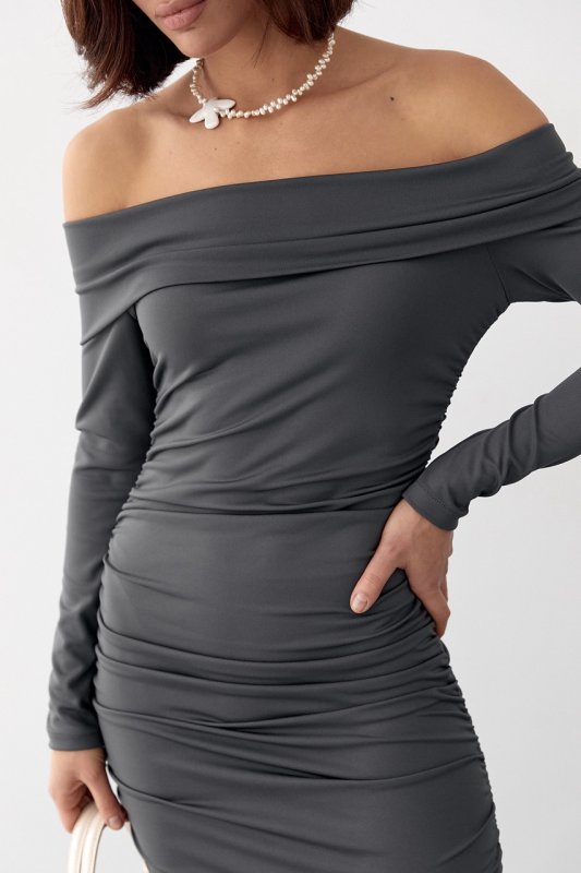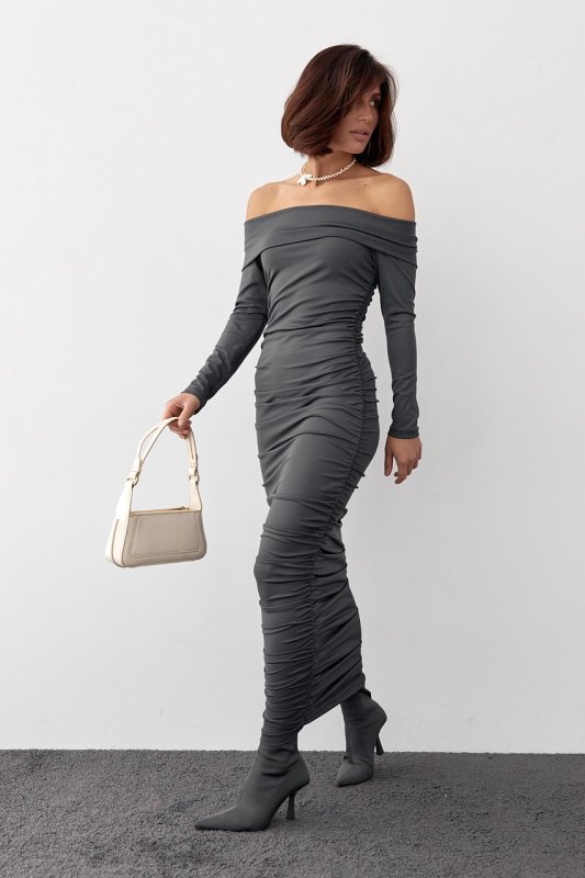 Силуетна сукня з драпіруванням і відкритими плечима - 00102 сірий