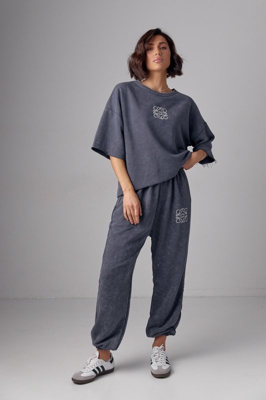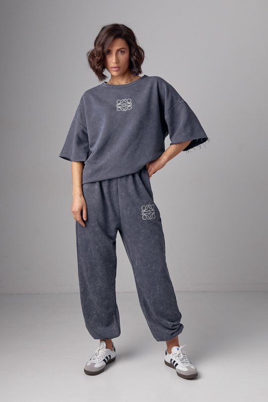 Спортивний костюм тай-дай з вишивкою - 332211 сірий