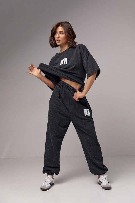 Спортивний костюм у техніці тай-дай з принтом Wang - 23175 чорний