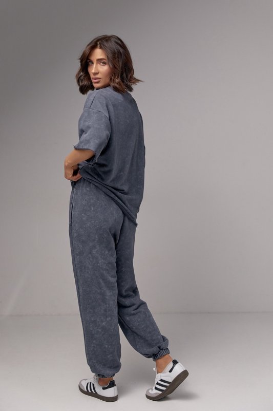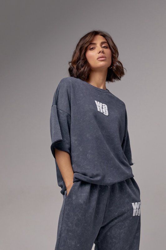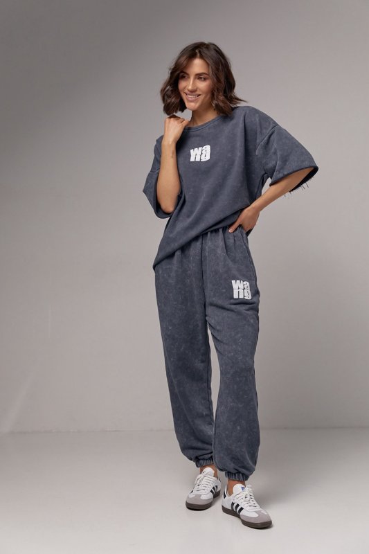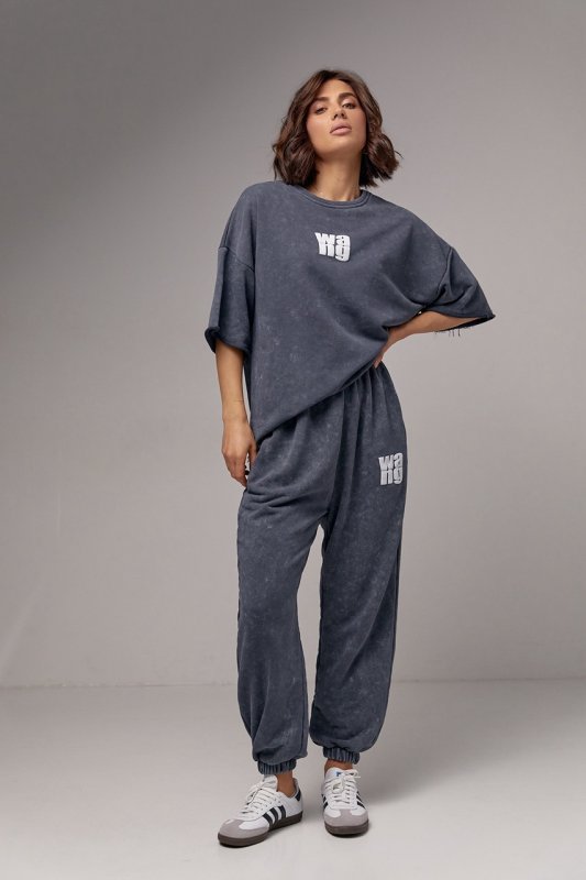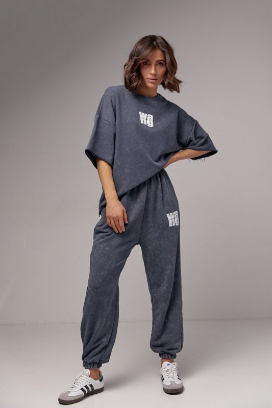 Спортивний костюм у техніці тай-дай з принтом Wang - 23175 темно-сірий
