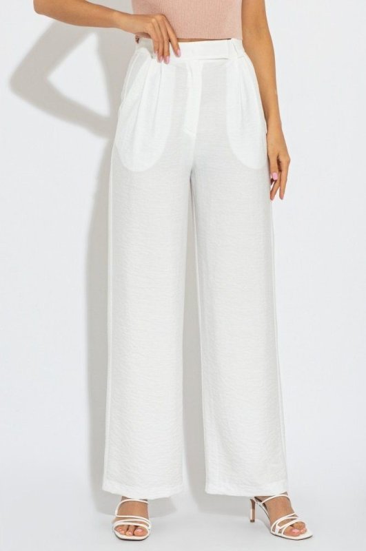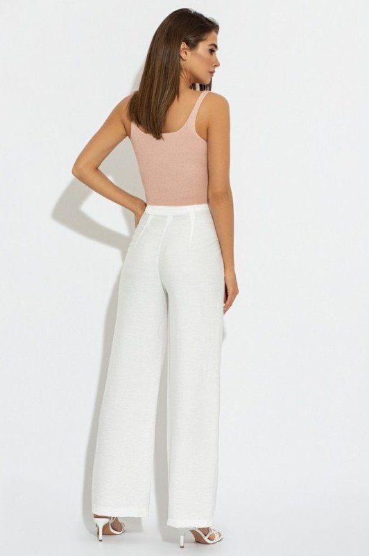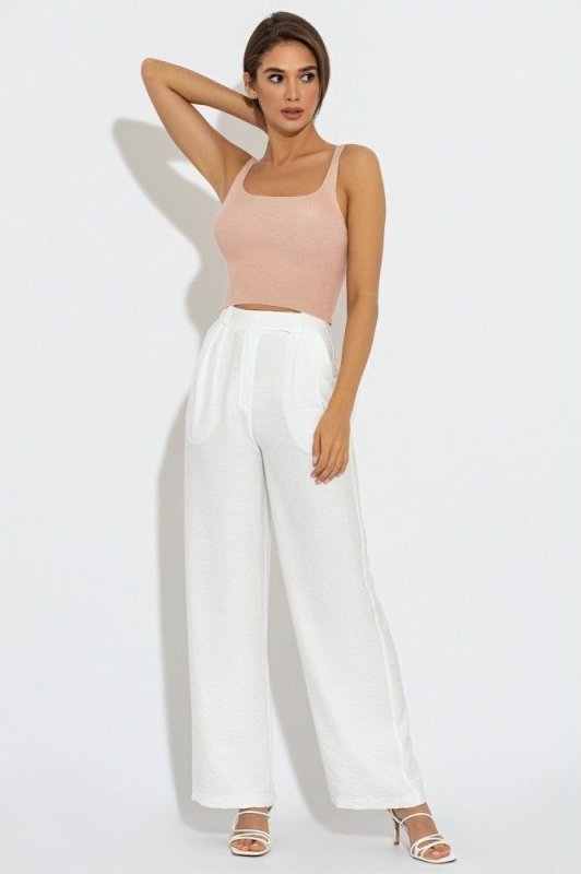 Штани з лляної тканини з високою талією і бічними кишенями, що застібаються на блискавку і гудзика.
