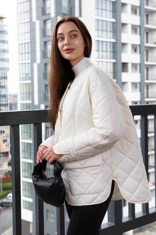 Стьбаний лайнер на мікро пуху молочного кольору 7530