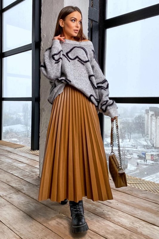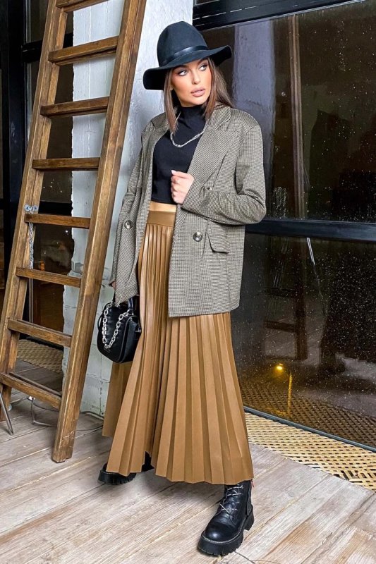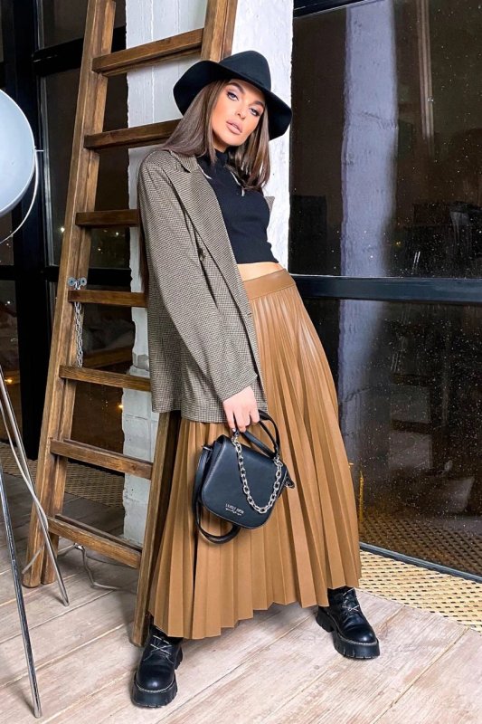 Стильна спідниця пліссе 1697.4537 коричнева