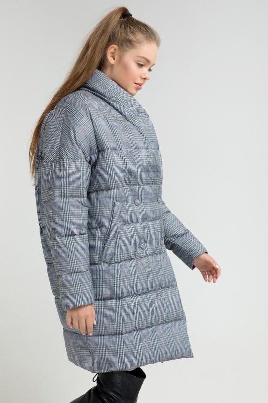 Сучасний і стильний пуховик прямого крою. Матеріал плащівка в клітку, підкладка з плащової тканини лакэ. Наповнювач еко-пух володіє відмінними захисними якостями в умовах нашої зими.
