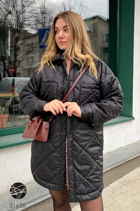 Стьобана куртка-сорочка 31655 чорний