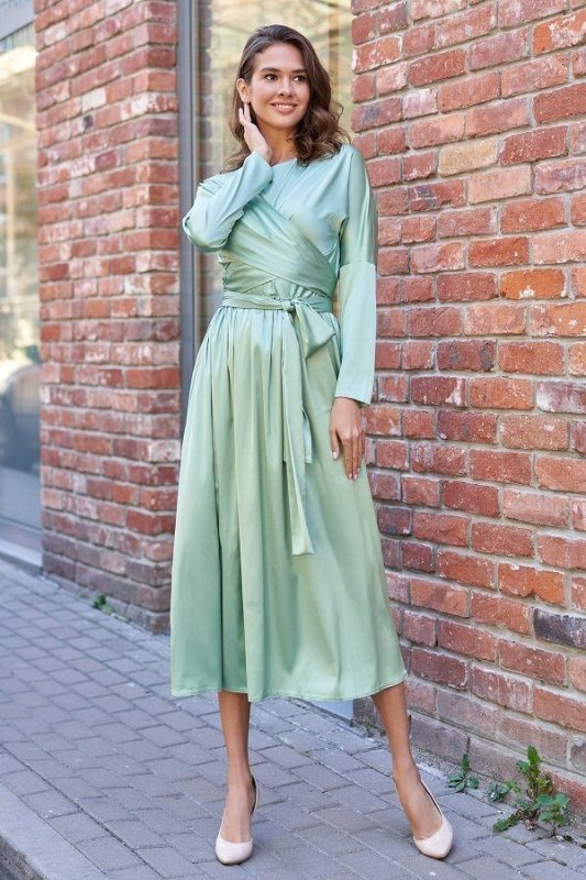 Стильна сукня з ніжного шовку "Армані" з цікавим декоративним запахом на грудях, який формуємо шикарний пояс. Жіночний і романтичний стиль нового сукні прикрасить будь-яку модницю. Шовк "Армані" - це універсальний матеріал, який прекрасно тримає форму і відмінно драпірується, при цьому виглядає шикарно на будь-якій фігурі. Безумовно, ця модель займе важливе місце у Вашому гардеробі.