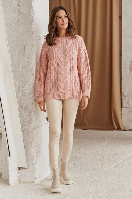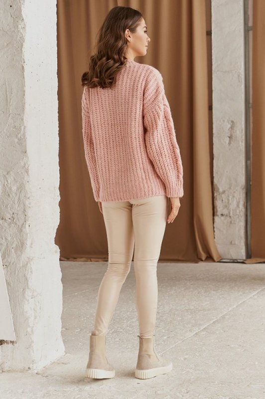 Базовий светр великої ажурної в'язки з акуратним коміром-стійкою в стилі "oversize". Довгий рукав і низ виробу на ребристих манжетах. Модель відмінно зберігає тепло і дарує відчуття затишку в прохолодну погоду. Вироблено в Туреччині.