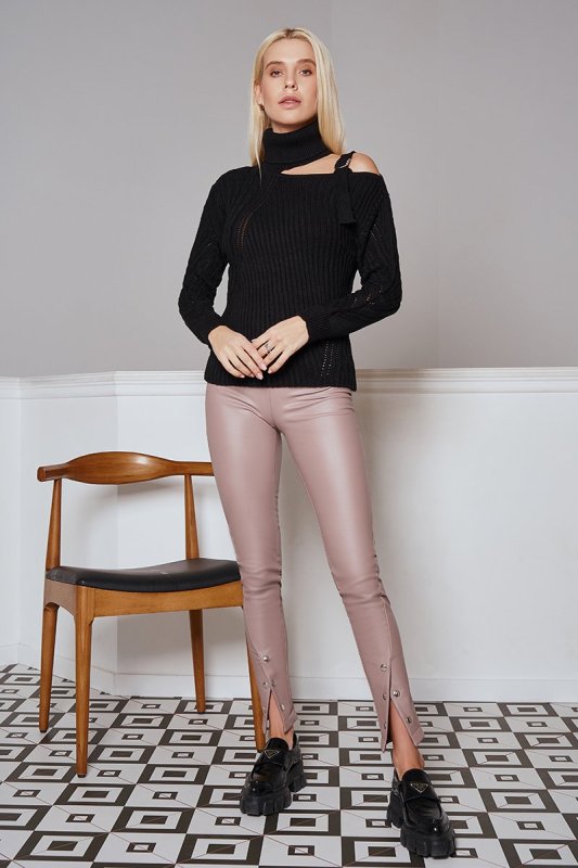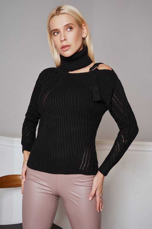 Светр з коміром і відкритим плечем на регульованій пряжці. Светр створений з м'якої пряжі, ідеально підходить для прогулянок і активного відпочинку. Вироблено в Туреччині.