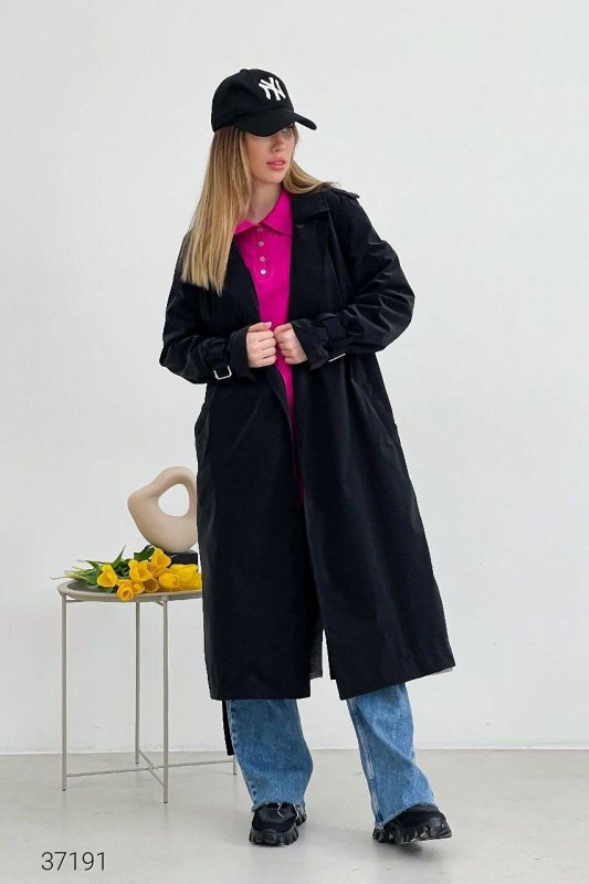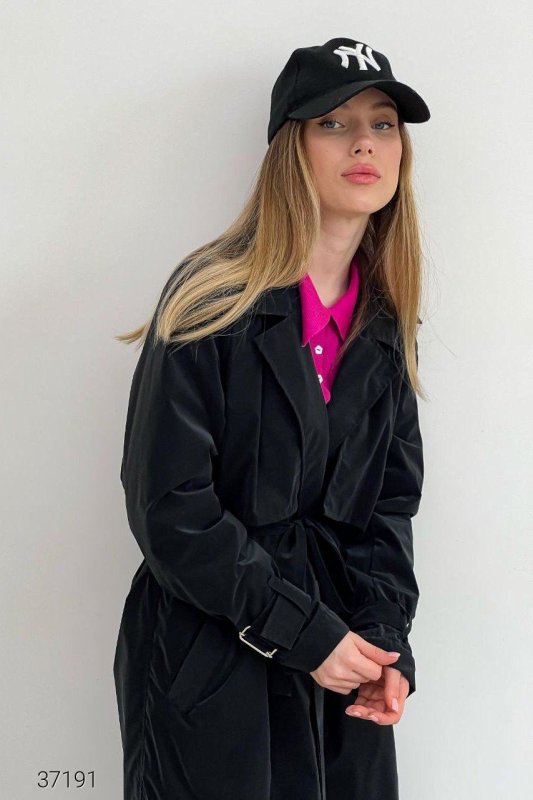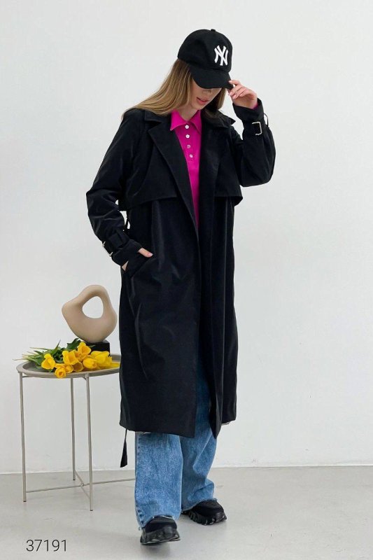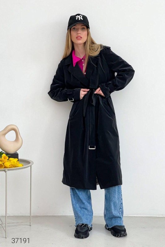 Тренч з оксамитовим напиленням 37191 чорний