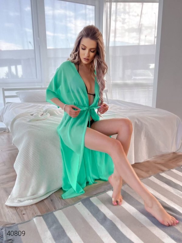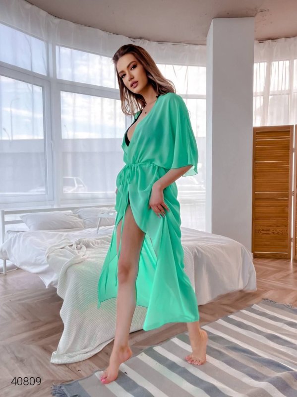 Туніка пляжна. Пояс затяжка. Відтінок може змінюватись! Розміри: (1) 42-46 (с-м-л); (2) 48-50 (хл-ххл). Довжина 145 см.
