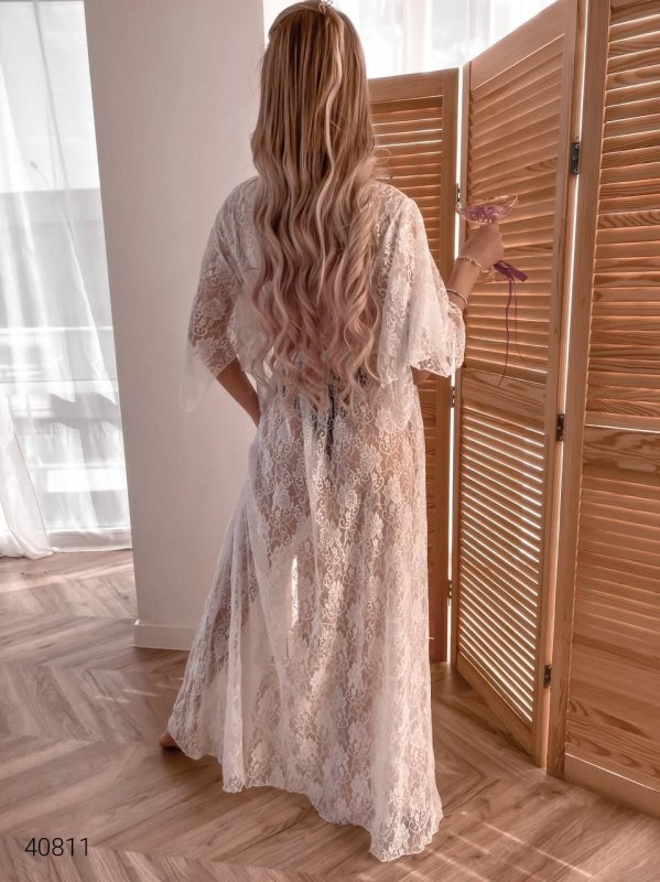 Пляжна туніка. Тканина: гіпюр (віскоза + поліестер). Розміри: (1) 42-46 (с-м-л); (2) 48-52 (хл-ххл-хххл). Довжина 155 см. Дизайн візерунка може трохи відрізнятися!