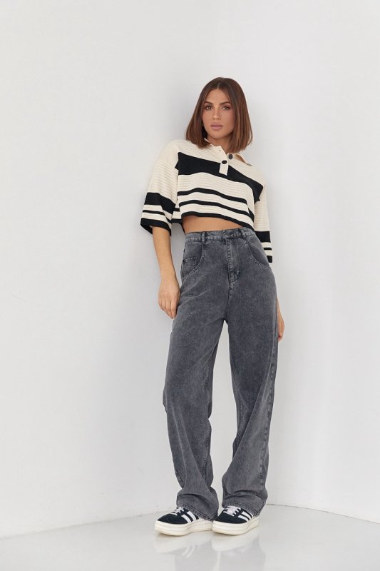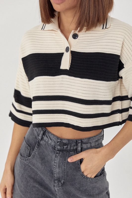 З такою вкороченою oversize футболкою жіночою ти можеш поєднувати і трикотажні стильні спідниці різних фасонів, і літні шорти, і улюблені джинси. Її трендовий фасон подарує тобі комфорт, а візерунок у горизонтальну кольорову смужку стане основним акцентом кожного образу.