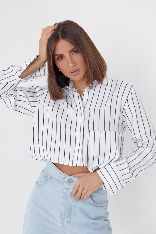 Укорочена сорочка в смужку - 4447 біла
