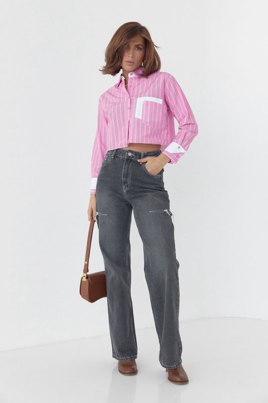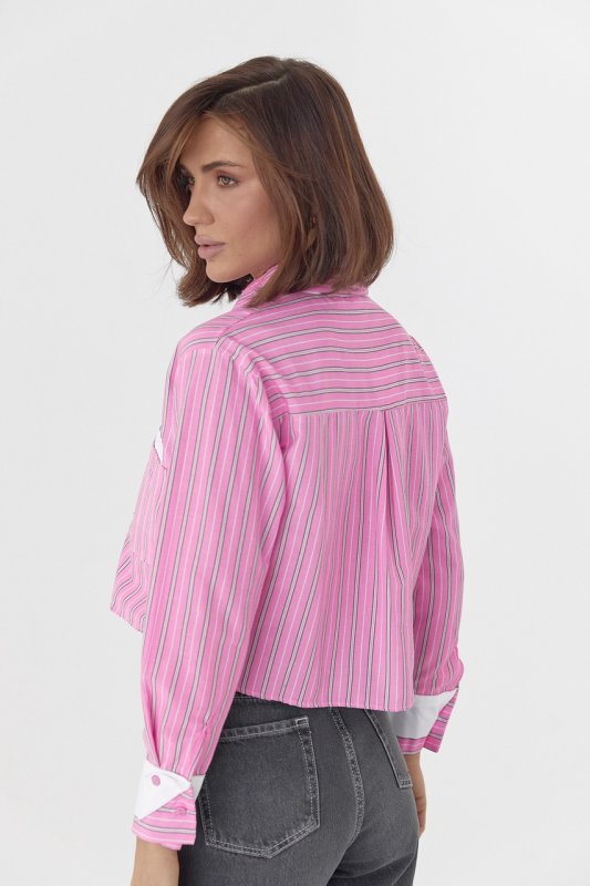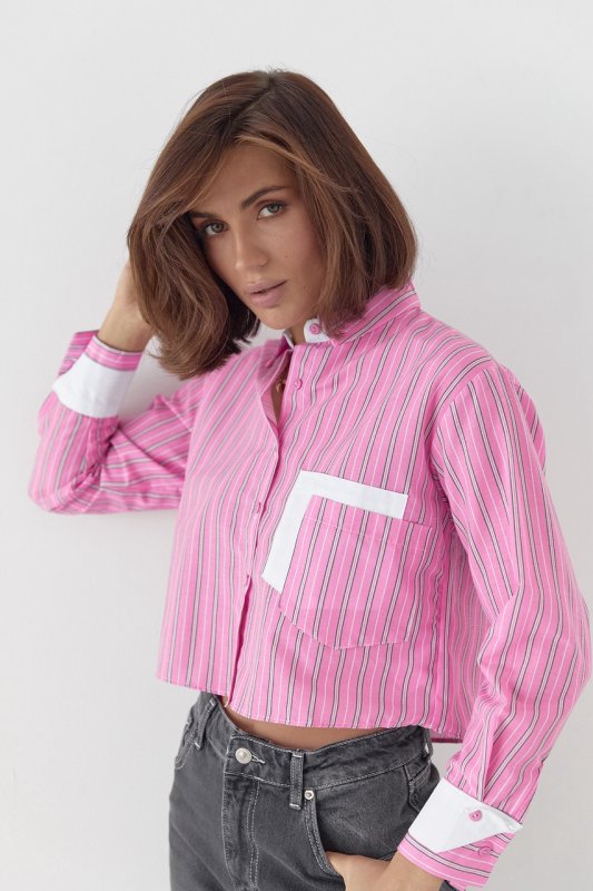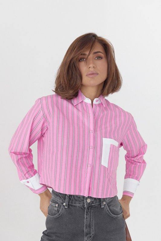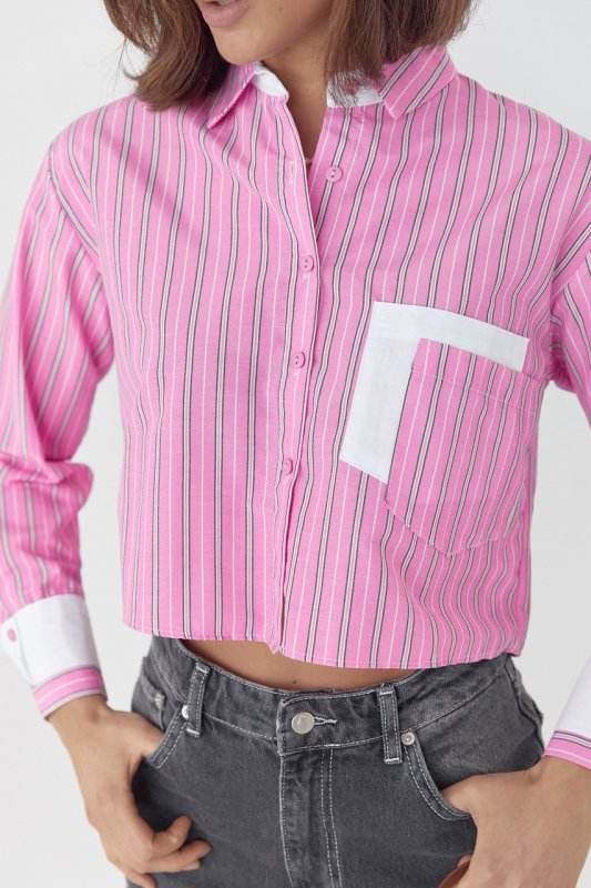 Укорочена сорочка в смужку з двома кишенями - 23280 рожева
