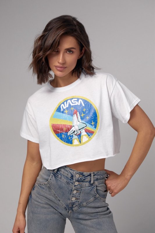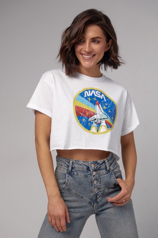 Укорочена жіноча футболка з принтом Nasa - 1259 біла