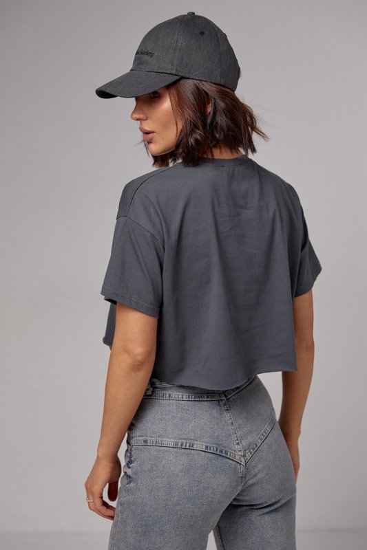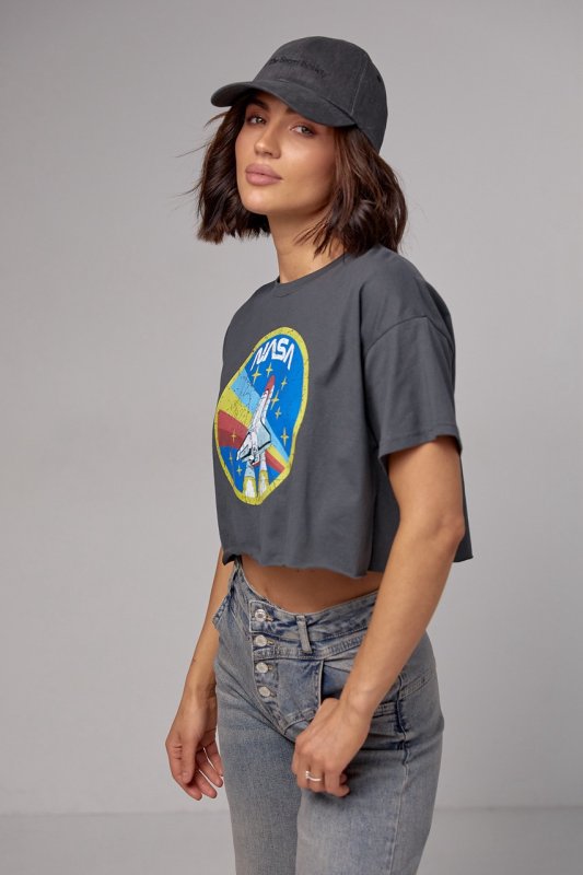 Укорочена жіноча футболка з принтом Nasa - 1259 темно-сірий