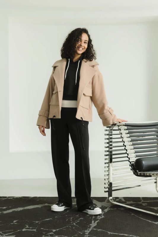 Декоративні елементи: накладні кишені, хлястики на рукавах