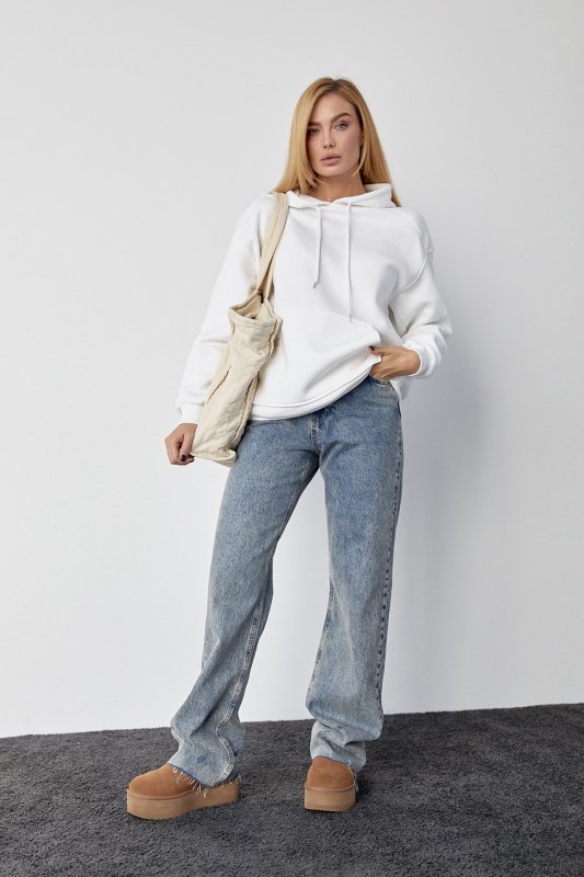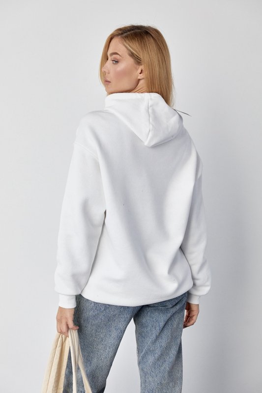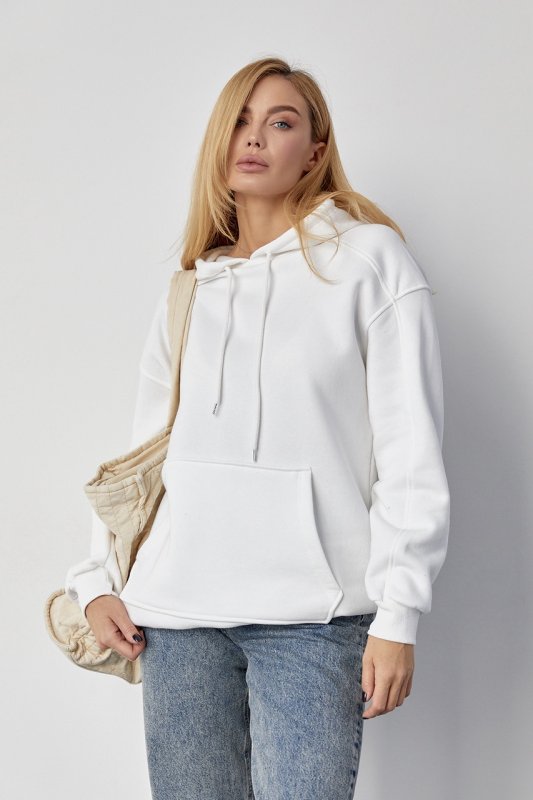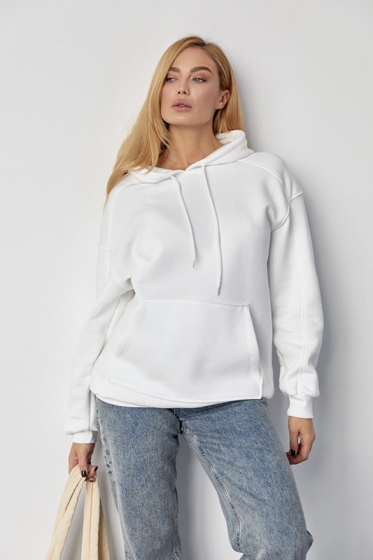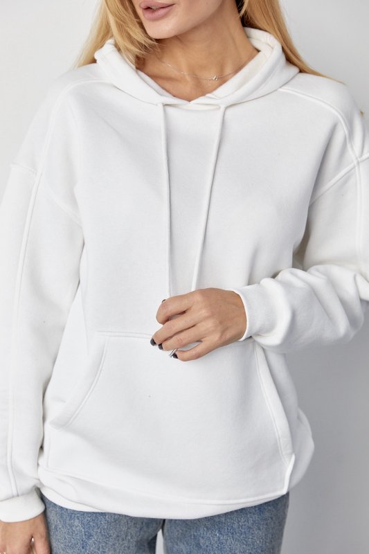 Утеплене жіноче худі з кишенею-кенгуру 8606 молочний