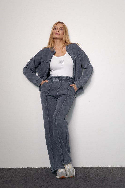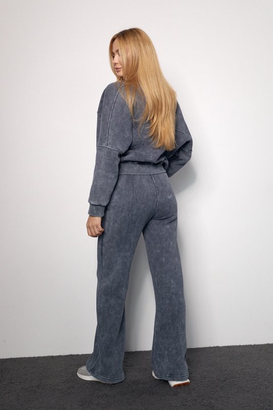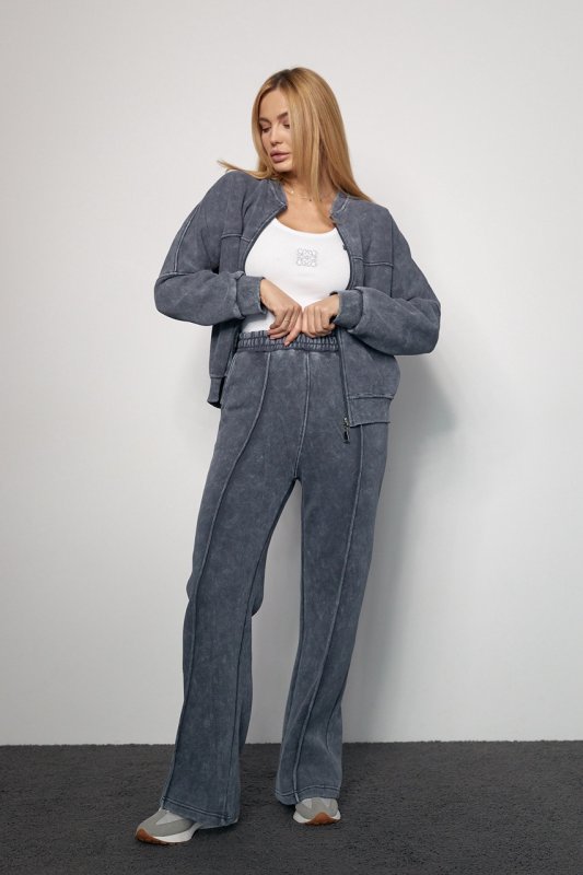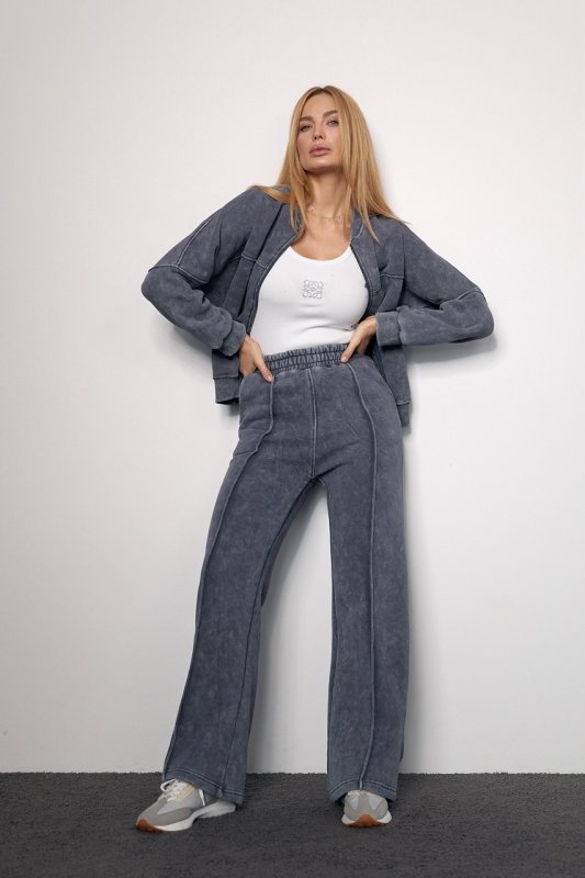Трикотажний жіночий костюм з начосом в техніці тай-дай не лише стильно виглядає, підкреслюючи красу жіночої фігури, а й порадує дівчат своїм комфортом.