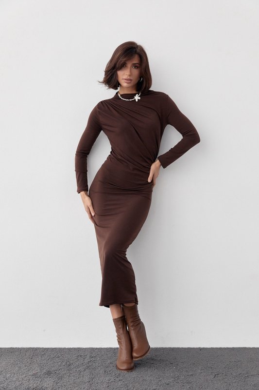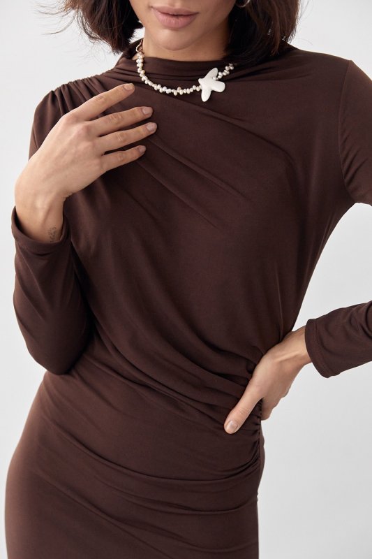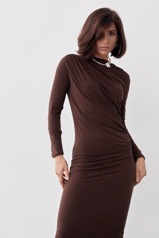 Вечірня сукня з драпіруванням 11020 коричнева