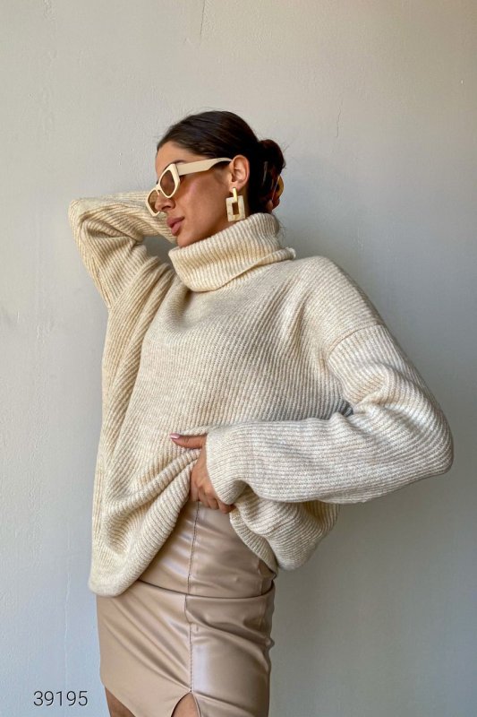 В'язаний светр у рубчик 39195 світло-бежевий