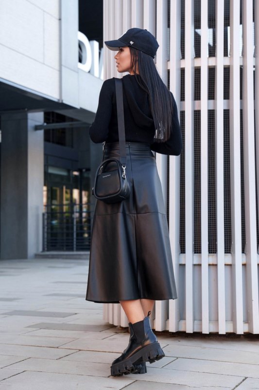 Спідниці з еко-шкіри поєднуються майже з будь-яким верхом: підходять сорочки, футболки, блузки, кофти та водолазки.