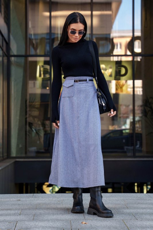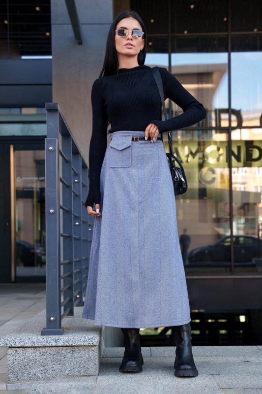 Тепла міді-спідниця А-силуету із щільної тканини - знахідка для осіннього та зимового гардеробу. Лаконічний стиль буде доречний і зі світлою сорочкою або жакетом, і з контрастною водолазкою. А універсальна довжина спідниці дозволяє носити її з різним взуттям. Враховуючи нейтральне забарвлення, таку спідницю легко можна вписати в офісний гардероб.