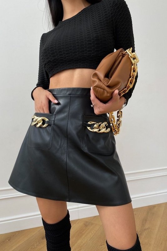 Шкіряна коротка спідниця - це своєрідний виклик суспільству, тому що залишитися непоміченою в ній просто неможливо! Ми пропонуємо Вашій увазі нашу нову модель спідниця» Венеціано " ця моделька виконана з еко шкіри на флісі тому відмінно підійде для осінньої і зимової пори. На кишенях присутні Декоративні ланки, які надають образу грайливості та оригінальності.