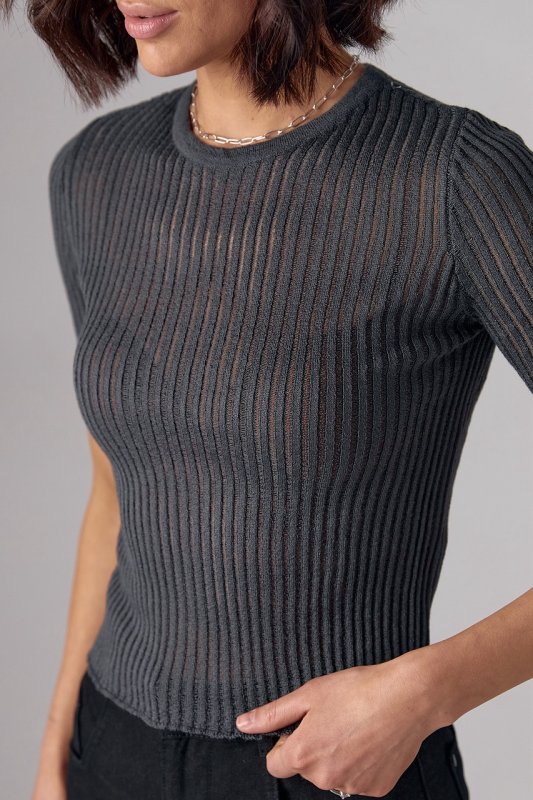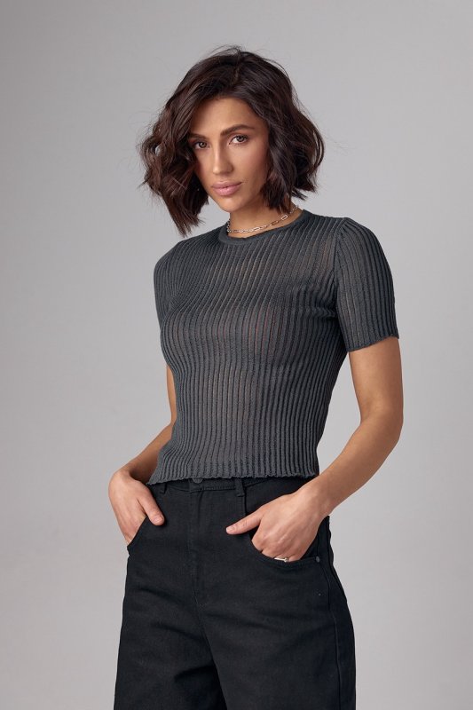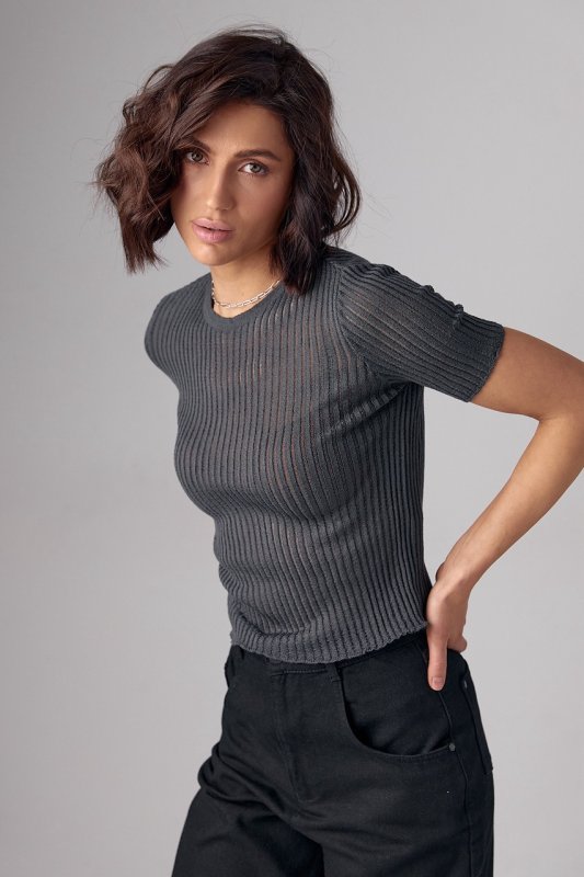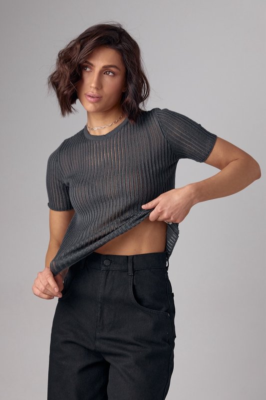 Жіноча футболка з ажурною в'язкою - 241049 темно-сірий