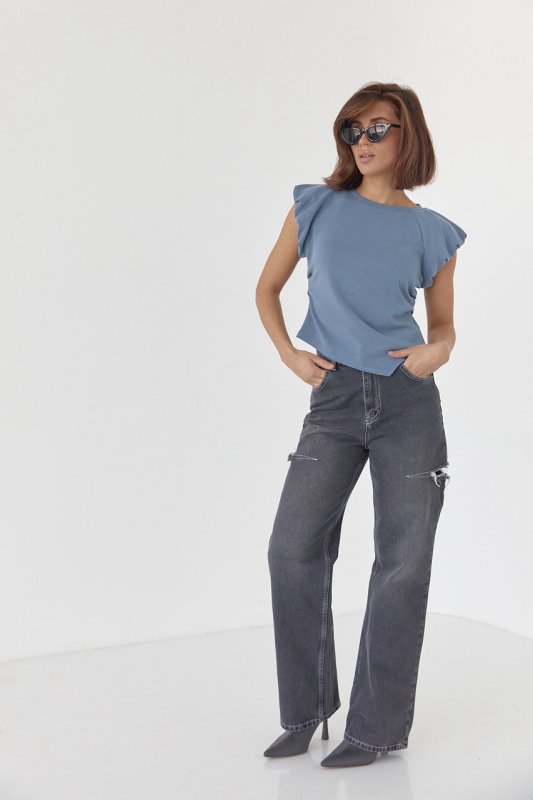 Жіноча футболка з пишними рукавами - 28375 сіра