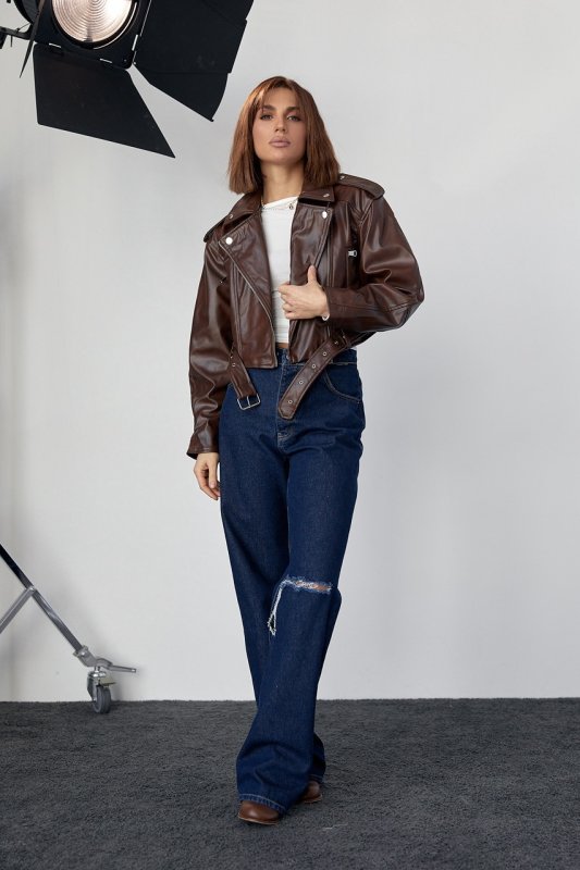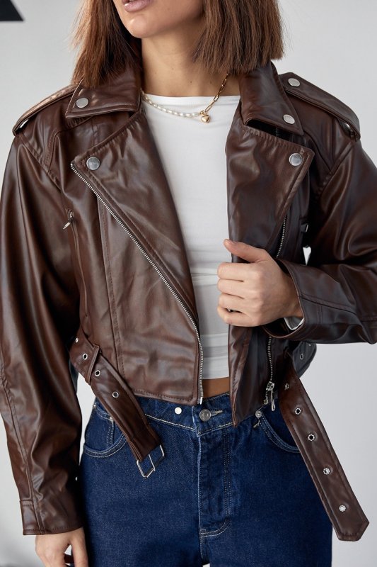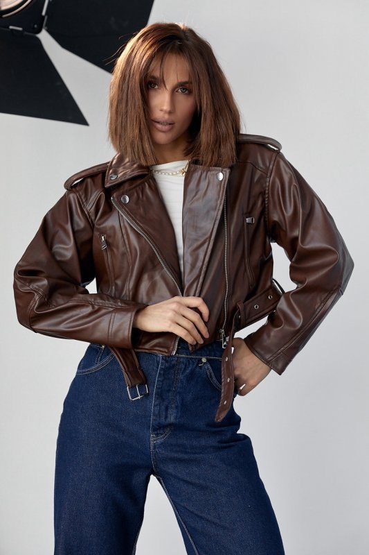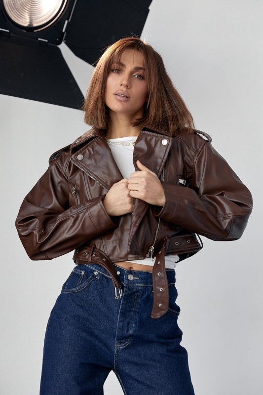 Жіноча коротка косуха з екошкіри 2980 коричневий