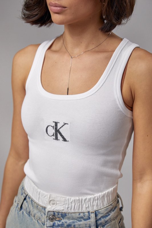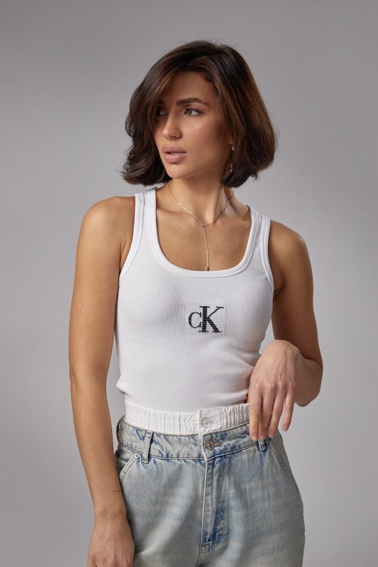 Майка жіноча в рубчик з паєтками і вишивкою CK - 241004 білий